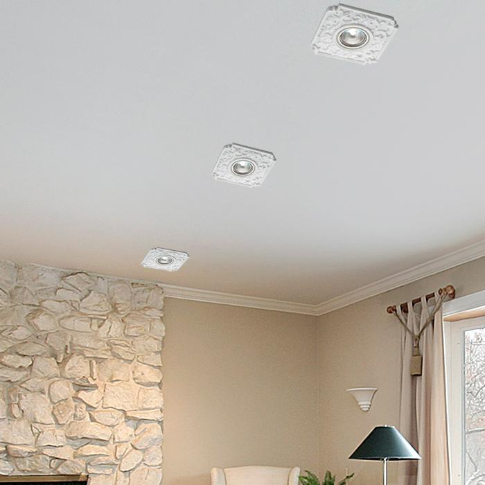 Встраиваемый светильник Novotech Spot Farfor 369865 от Венгерского бренда Novotech из коллекции Farfor предназначен для установки в гостиной в стиле прованс. Cветильник в форме квадрата с металлической арматурой белого цвета и белого цвета плафонами из стекла предназначен для освещения 2,8 м2.