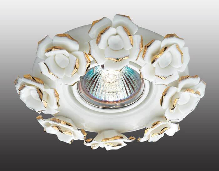 Встраиваемый светильник Novotech Spot Farfor 369871 от Венгерского бренда Novotech из коллекции Farfor предназначен для установки в гостиной в стиле прованс. Cветильник в форме Флористика с металлической арматурой и белого цвета плафонами из стекла предназначен для освещения м2.