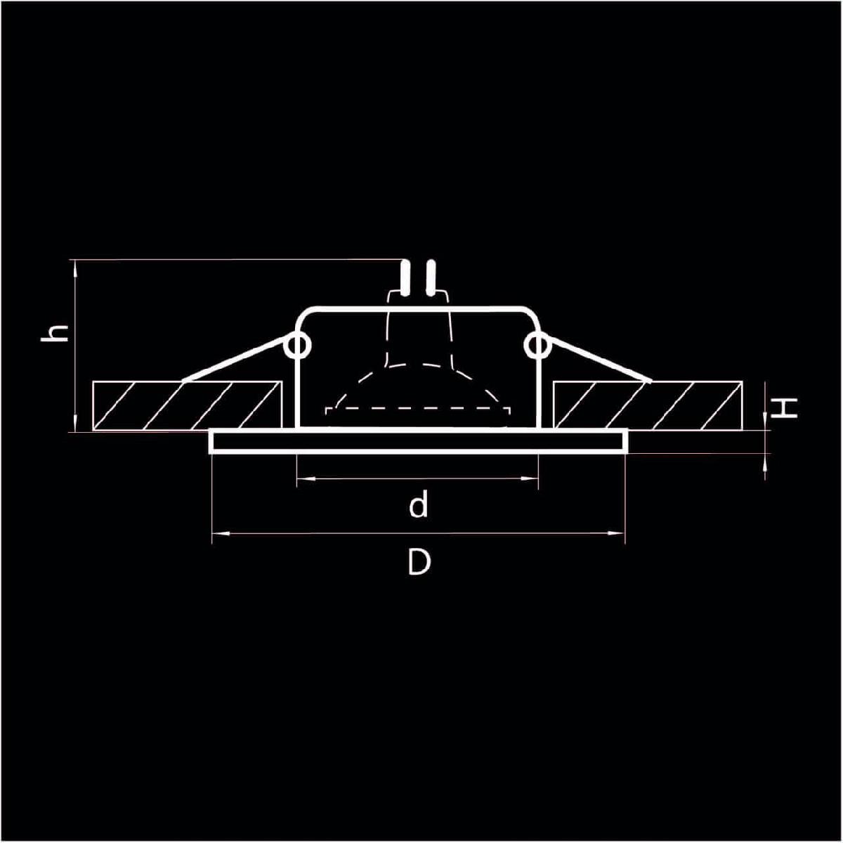 Для светильника необходима 1 светодиодная лампа 50 W. Габариты изделия: высота – 10 мм, диаметр – 85 мм.