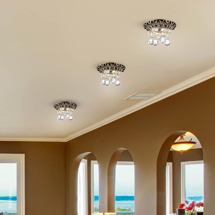 Для светильника необходима 1 галогеновая лампа 50 W. Габариты изделия: высота – 63 мм, диаметр – 100 мм.