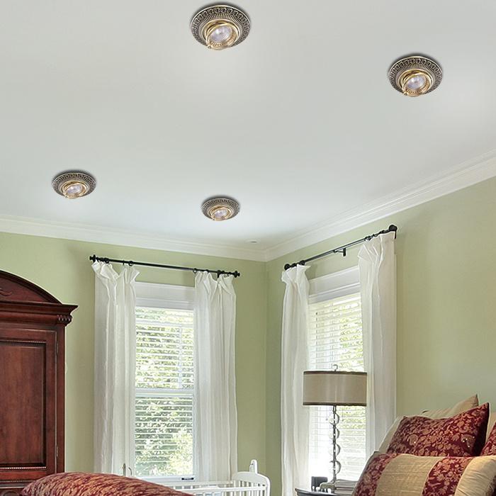 Встраиваемый светильник Novotech Spot Vintage 370017 от Венгерского бренда Novotech из коллекции Spot предназначен для установки на потолок в гостиной в классиком стиле. Cветильник в форме круга с металлической арматурой залотого цвета и залотого цвета плафонами из металла предназначен для освещения 2,8 м2.