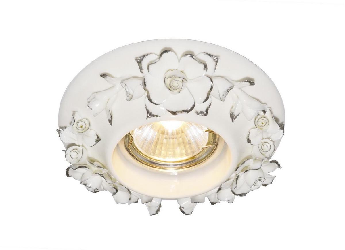 Встраиваемый светильник Arte Lamp Fragile A5260PL-1SA от Китайского бренда из коллекции Fragile предназначен для установки на потолок в гостиной в стиле прованс. Cветильник в форме с металлической арматурой белого цвета и белого цвета плафонами из керамики предназначен для освещения 2,8 м2.