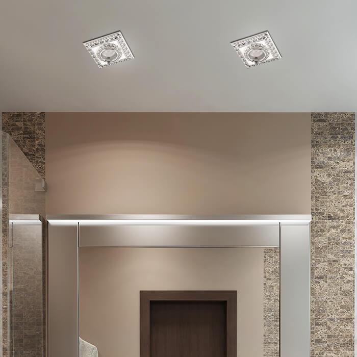 Встраиваемый светильник Novotech Spot Daisy 370046 от Венгерского бренда Novotech из коллекции Spot предназначен для установки на потолок в ванной в классиком стиле. Cветильник в форме квадрата с металлической арматурой цвет хрома и цвет хрома плафонами из металла предназначен для освещения 2,8 м2.