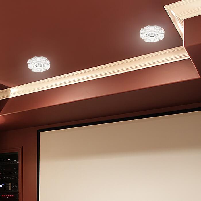 Для светильника необходима 1 галогеновая лампа 50 W. Габариты изделия: высота – 20 мм, диаметр – 140 мм.