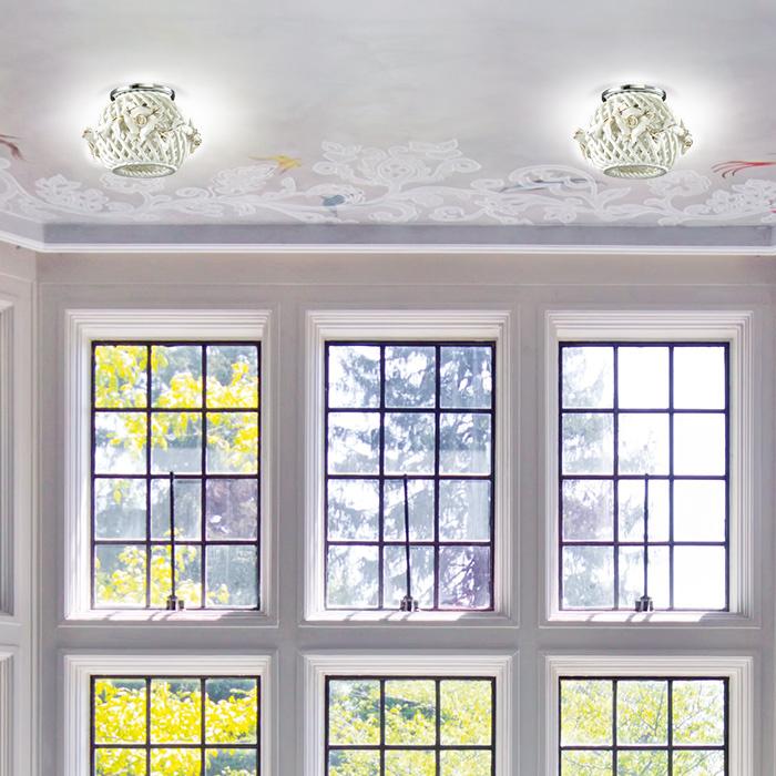 Встраиваемый светильник Novotech Spot Farfor 370207 от Венгерского бренда Novotech из коллекции Farfor предназначен для установки на потолок в гостиной в стиле прованс. Cветильник в форме круга с металлической арматурой цвет хрома и белого цвета плафонами из керамики предназначен для освещения 2,2 м2.