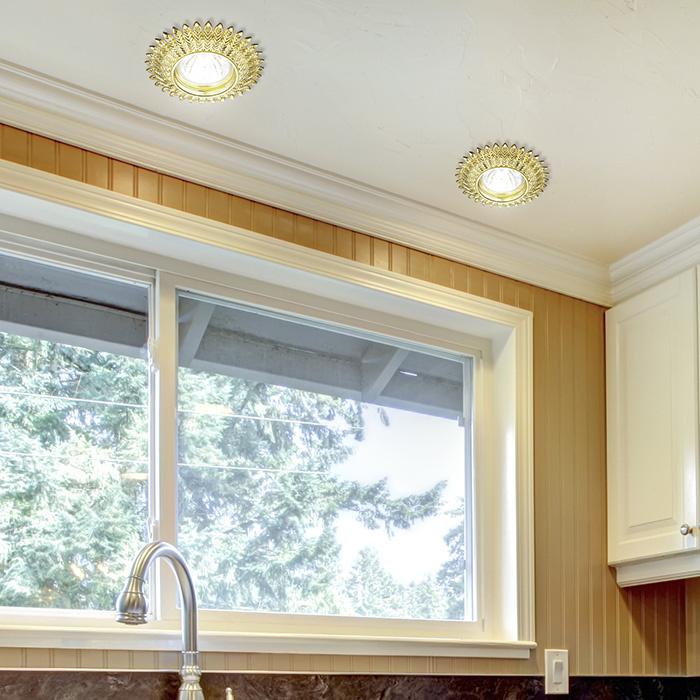 Встраиваемый светильник Novotech Spot Forza 370243 от Венгерского бренда Novotech из коллекции Spot предназначен для установки на потолок в гостиной в стиле модерн. Cветильник в форме Флористика с металлической арматурой залотого цвета и залотого цвета плафонами из металла предназначен для освещения 2,8 м2.