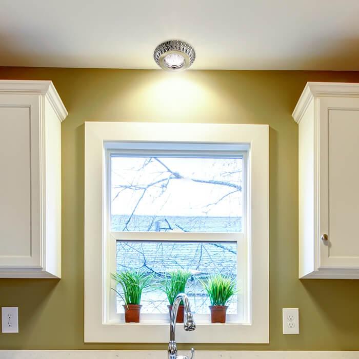 Для светильника необходима 1 галогеновая лампа 50 W. Габариты изделия: высота – 40 мм, диаметр – 100 мм.