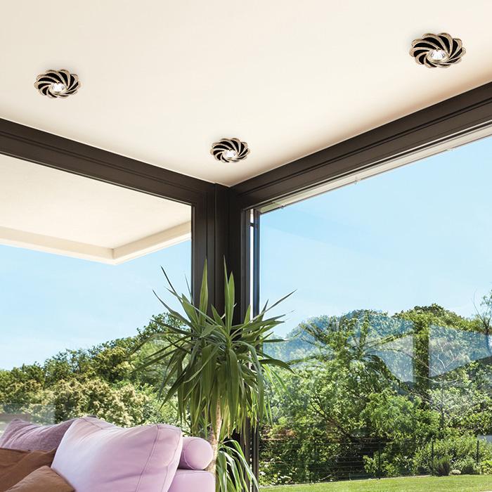 Встраиваемый светильник Novotech Spot Pattern 370220 от Венгерского бренда Novotech из коллекции Spot предназначен для установки на потолок в гостиной в стиле модерн. Cветильник в форме Флористика с металлической арматурой залотого цвета и черного цвета плафонами из предназначен для освещения 2,8 м2.