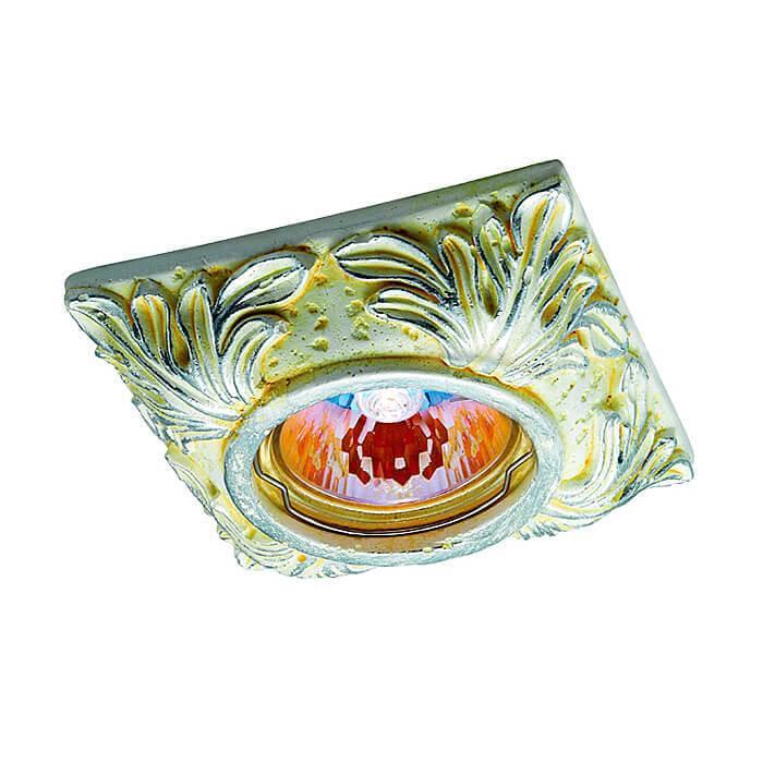 Встраиваемый светильник Novotech Sandstone 369575 от Венгерского бренда Novotech из коллекции предназначен для установки на потолок в гостиной в стиле прованс. Cветильник в форме квадрата с металлической арматурой цвет хрома и зеленого цвета плафонами из предназначен для освещения 2,8 м2.
