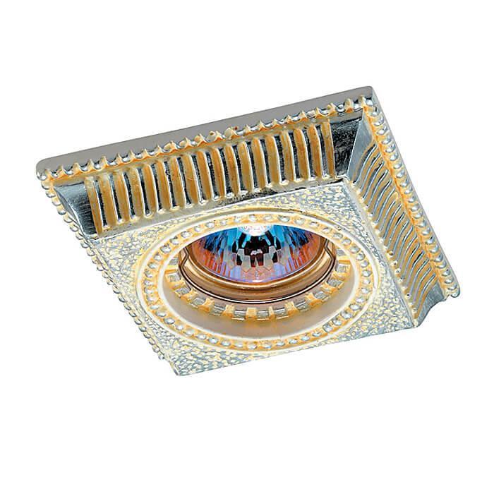 Встраиваемый светильник Novotech Sandstone 369832 от Венгерского бренда Novotech из коллекции предназначен для установки на потолок в гостиной в классиком стиле. Cветильник в форме квадрата с металлической арматурой серебрянного цвета и залотого цвета плафонами из предназначен для освещения 2,8 м2.