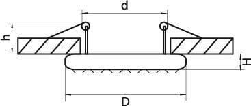 Для светильника необходима 1 светодиодная лампа 50 W. Габариты изделия: высота – 8 мм, диаметр – 80 мм.