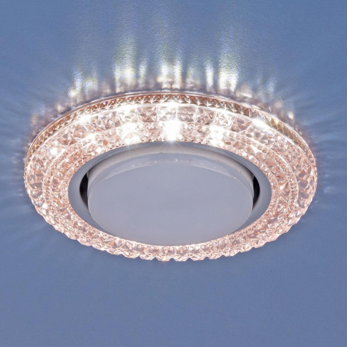 Встраиваемый светильник Elektrostandard 3030 GX53 PK розовый a035178 от бренда из коллекции 3030 предназначен для установки врезания в гостиной в современном стиле. Cветильник в форме с металлической арматурой серого цвета и розового цвета плафонами из стекла предназначен для освещения м2.