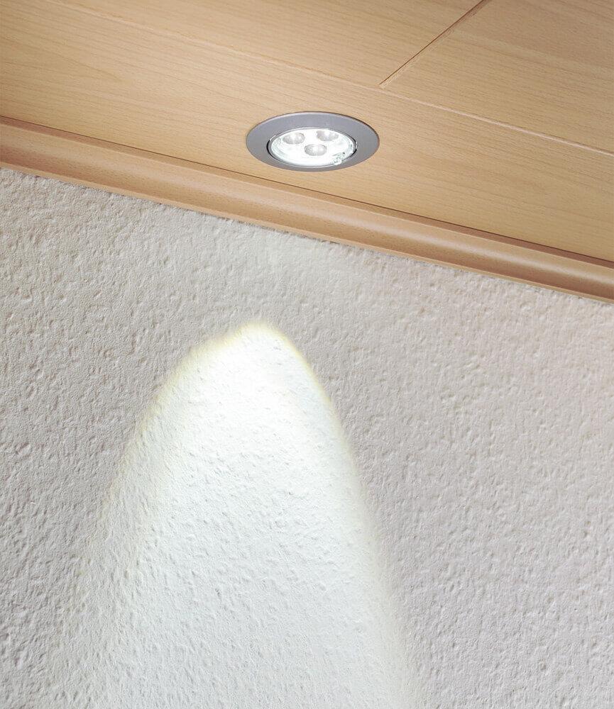 Для светильника необходима светодиодных ламп 3 W. Габариты изделия: высота – 60 мм, диаметр – 83 мм.