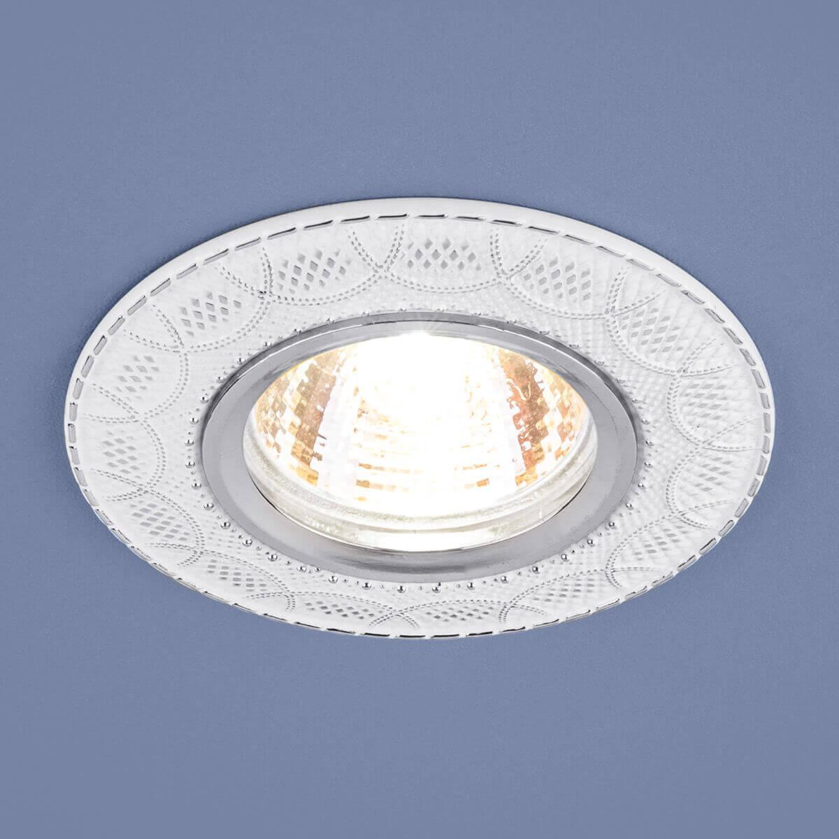 Встраиваемый светильник Elektrostandard 7010 MR16 WH/SL белый/серебро a036772 от бренда из коллекции 7010 предназначен для установки в спальни в стиле прованс. Cветильник в форме с металлической арматурой серебрянного цвета и белого цвета плафонами из металла предназначен для освещения м2.