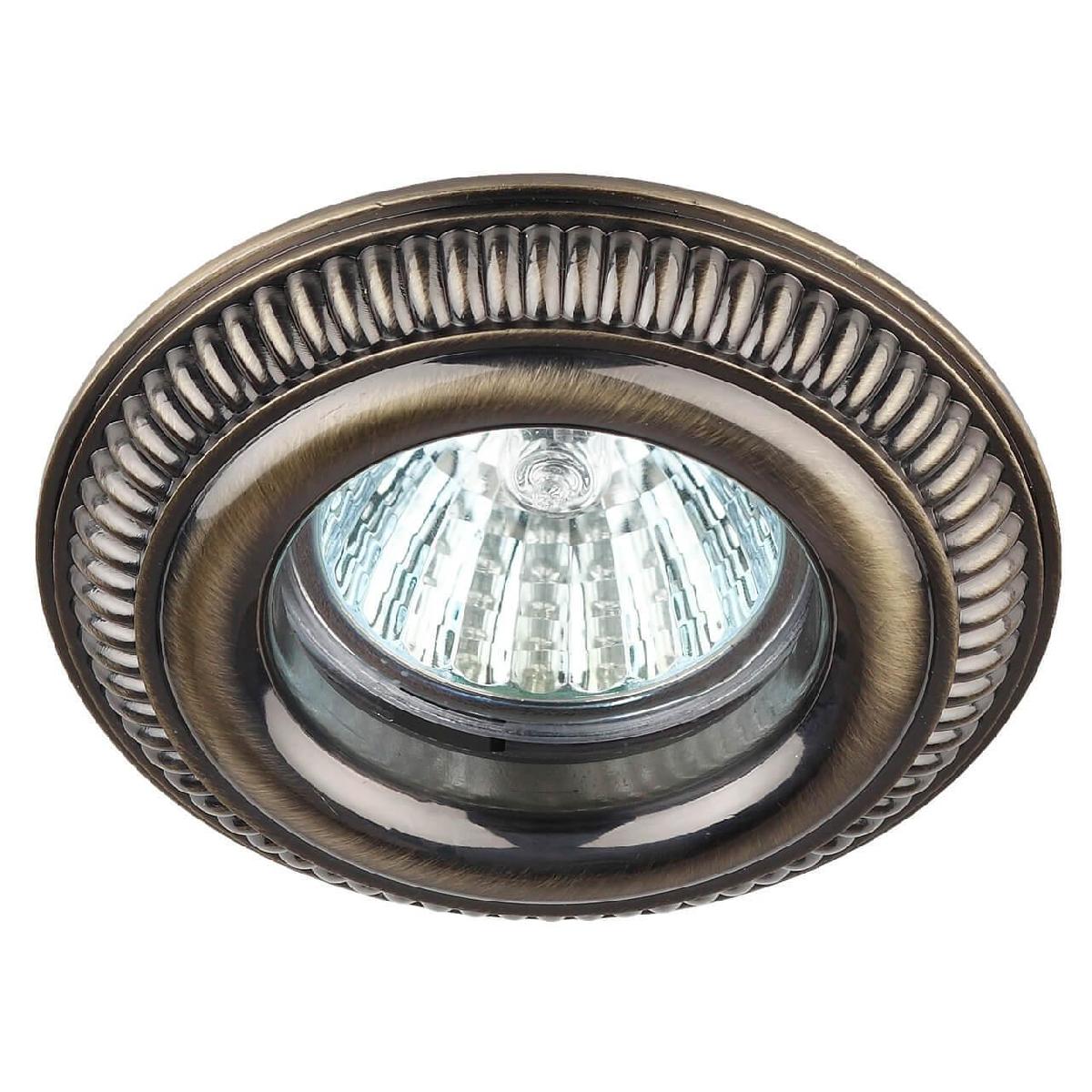 Встраиваемый светильник ЭРА Литой KL51 SB Б0009332 от Российского бренда ЭРА из коллекции Литой предназначен для установки врезания в спальни в стиле модерн. Cветильник в форме круга с металлической арматурой бронзового цвета и бронзового цвета плафонами из металла предназначен для освещения 3 м2.