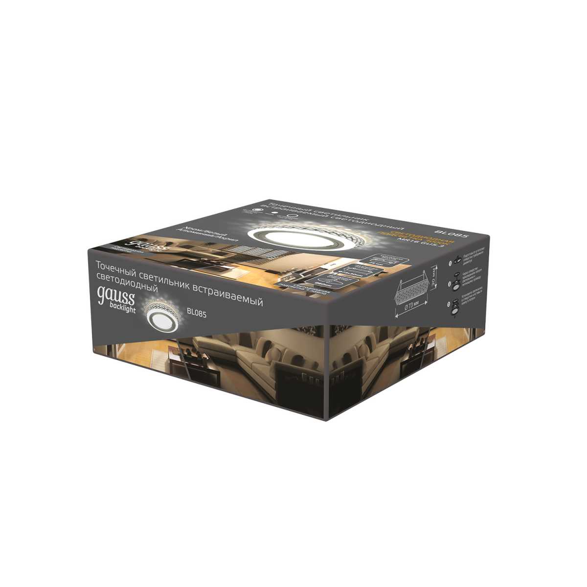 Встраиваемый светильник Gauss Backlight BL085 от Китайского бренда Gauss из коллекции Backlight предназначен для установки врезания в гостиной в восточном стиле. Cветильник в форме цилиндра с алюмииневой арматурой цвет хрома и белого цвета плафонами из акрила предназначен для освещения 2 м2.