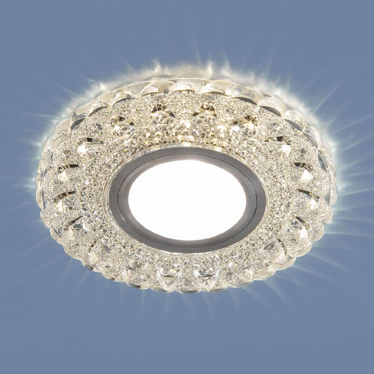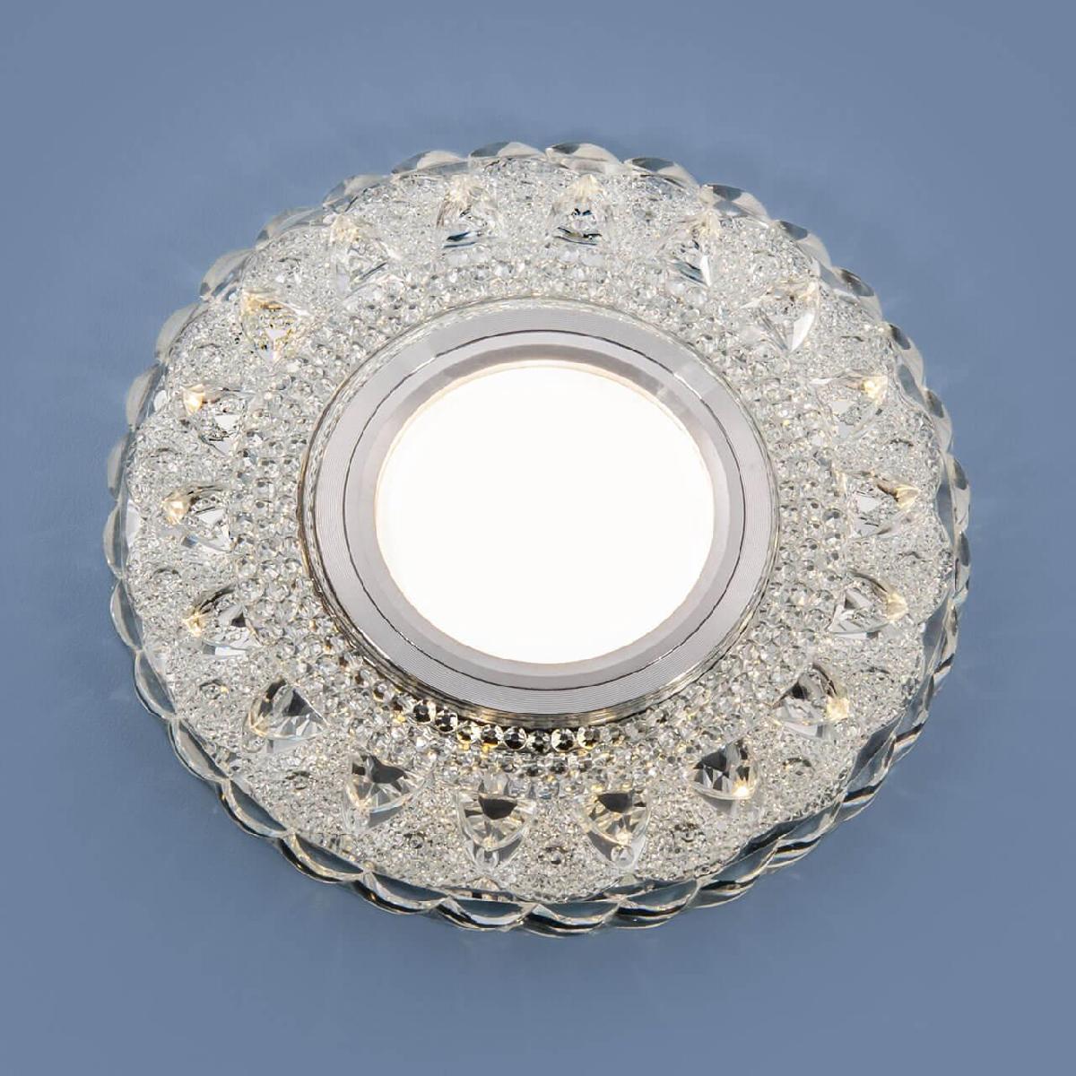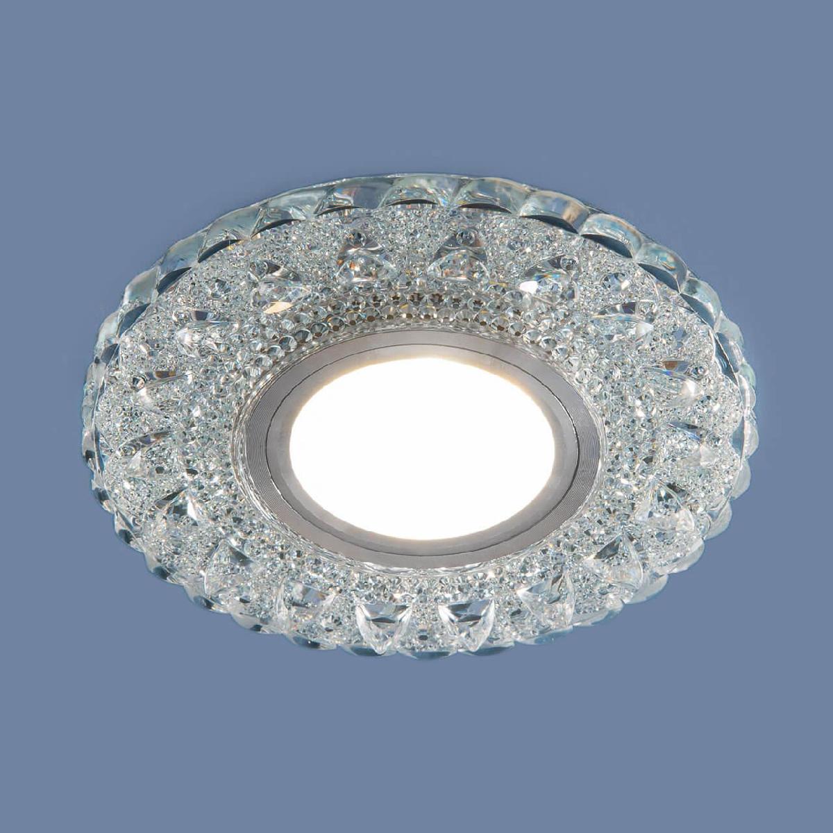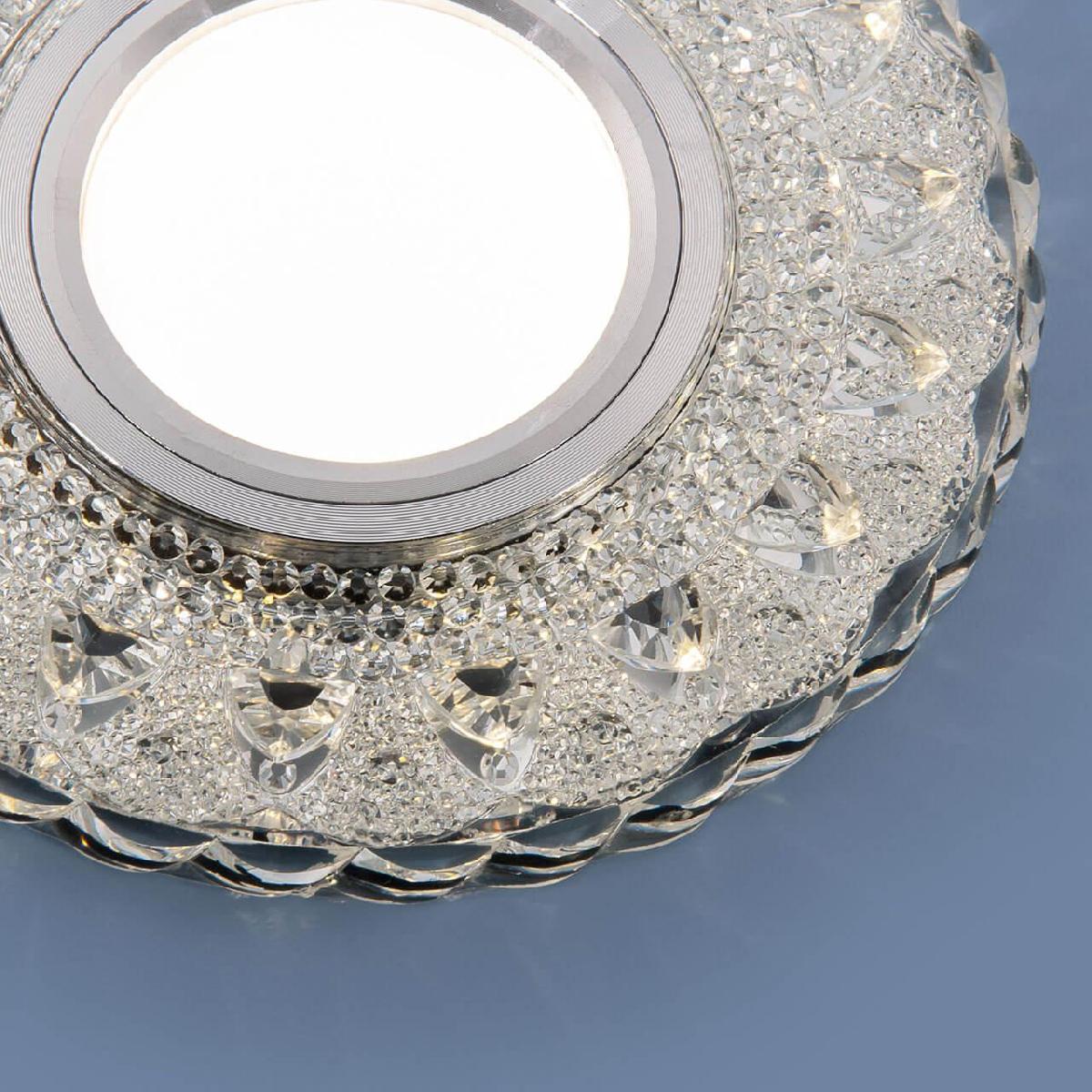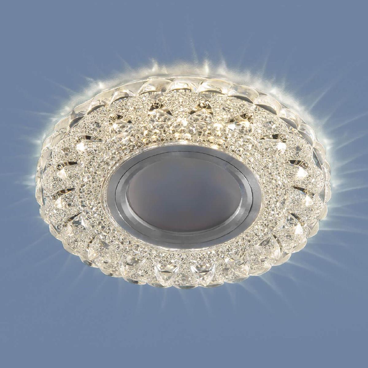 Встраиваемый светильник Elektrostandard 2236 MR16 CL прозрачный a045462 от Китайского бренда из коллекции 2236 предназначен для установки в спальни в стиле модерн. Cветильник в форме с металлической арматурой цвет хрома и прозрачного цвета плафонами из стекла предназначен для освещения 1,9 м2.