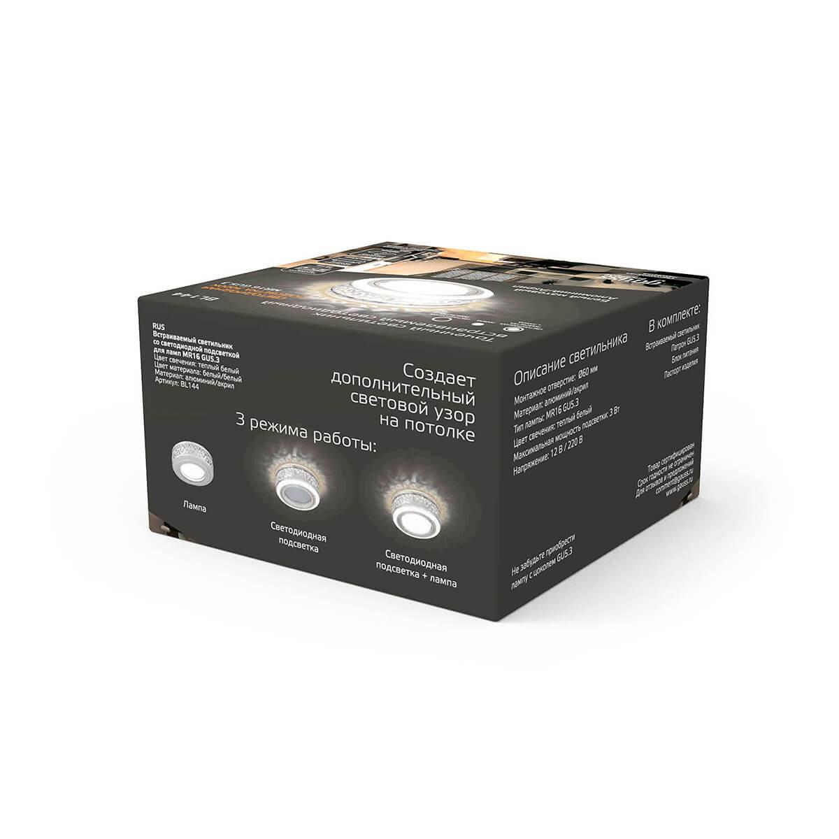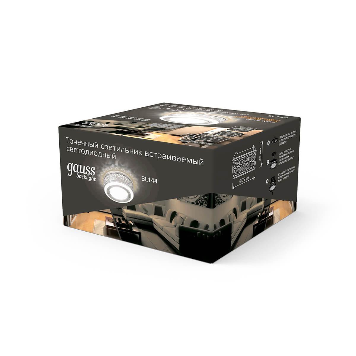 Встраиваемый светильник Gauss Backlight BL144 от Китайского бренда Gauss из коллекции Backlight предназначен для установки в кухне в стиле прованс. Cветильник в форме круга с алюмииневой арматурой белого цвета и белого цвета плафонами из акрила предназначен для освещения 1,5 м2.