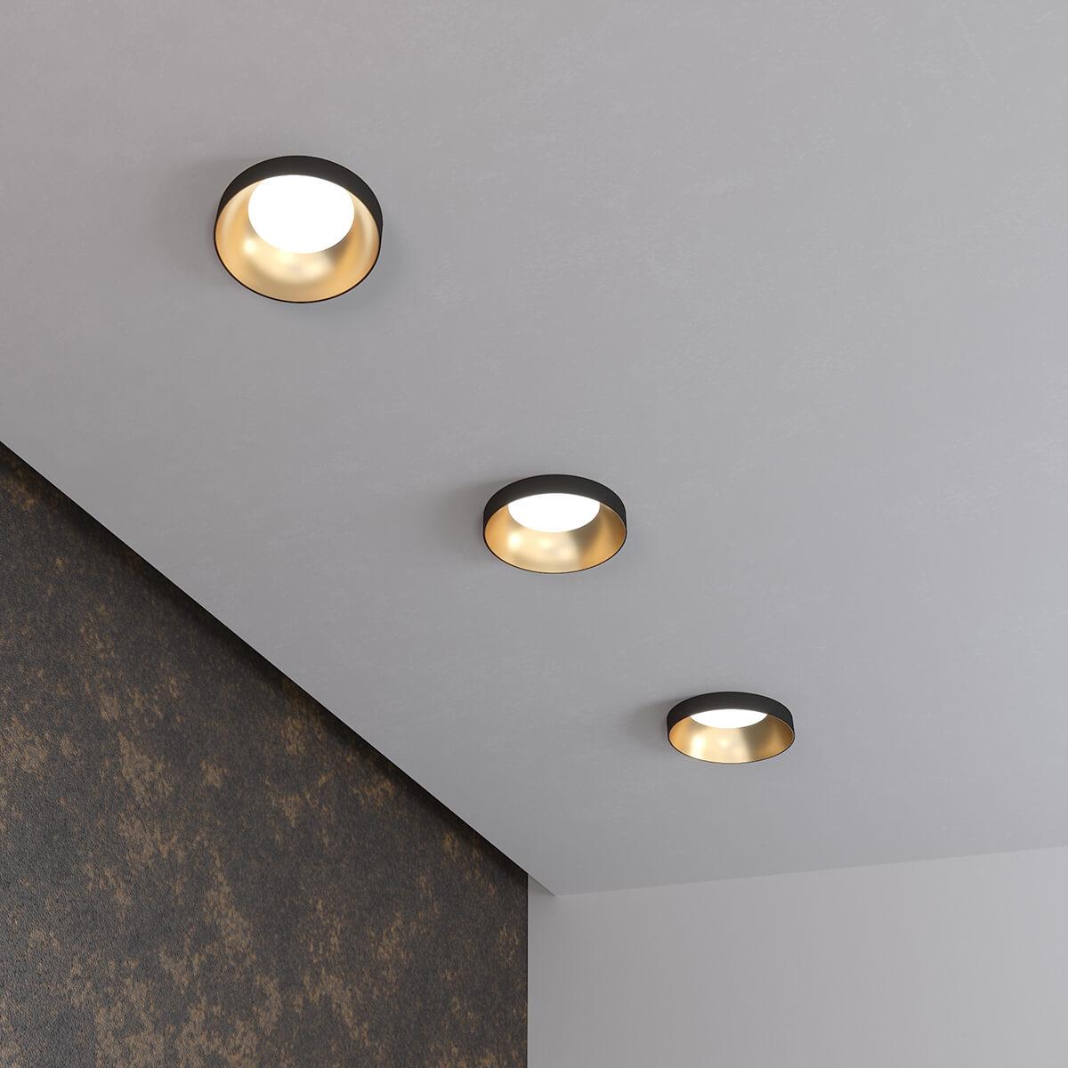 Встраиваемый светильник Elektrostandard 112 MR16 золото/черный a053341 от Китайского бренда из коллекции 112 MR16 предназначен для установки врезания в прихожей в минималистическом стиле. Cветильник в форме с алюмииневой арматурой черного цвета и черного цвета плафонами из алюминия предназначен для освещения 2 м2.