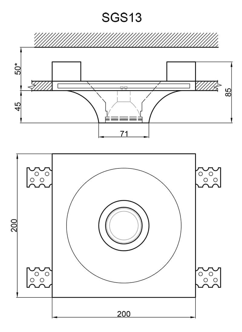 Встраиваемый светильник Artpole SGS13 от бренда из коллекции предназначен для установки врезания в спальни в современном стиле. Cветильник в форме с гипосовой арматурой белого цвета и белого цвета плафонами из гипса предназначен для освещения 17 м2.