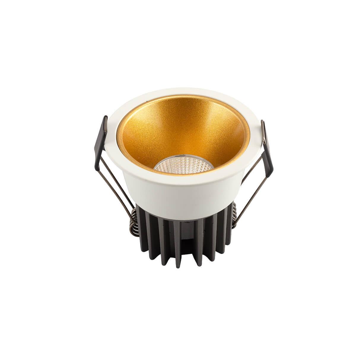 Встраиваемый светильник Denkirs DK4500-WG от Датского бренда Denkirs из коллекции DK4500 предназначен для установки врезания в гостиной в хай-тек стиле. Cветильник в форме круга с алюмииневой арматурой белого цвета и залотого цвета плафонами из алюминия предназначен для освещения 4 м2.