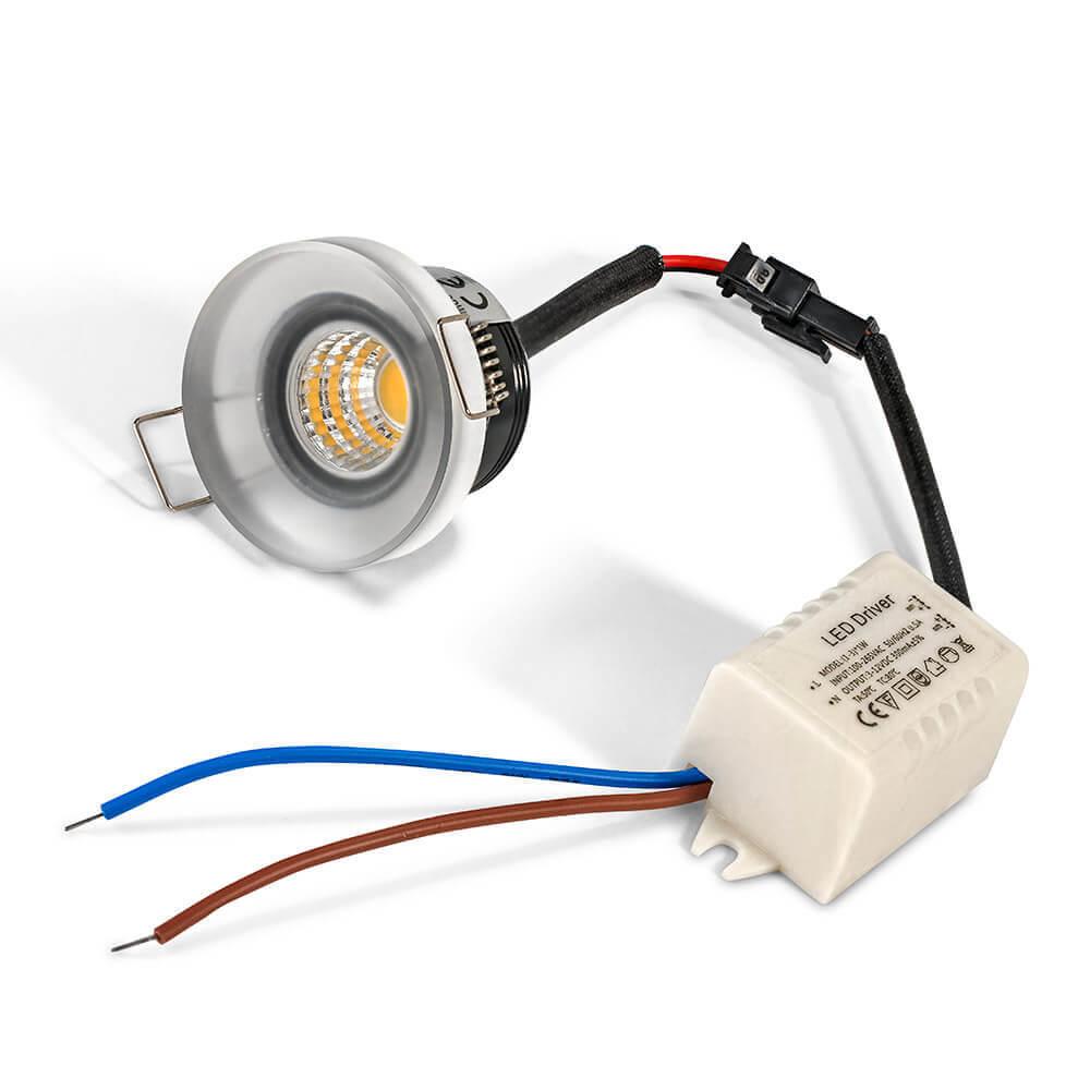 Для светильника необходима светодиодных ламп 3 W. Габариты изделия: высота – 30 мм, диаметр – 48 мм.