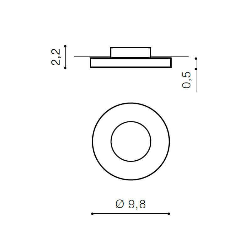 Для светильника необходима 1 галогеновая лампа 50 W. Габариты изделия: высота – 22 мм, диаметр – 98 мм.
