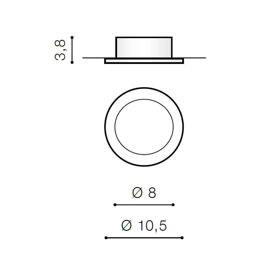 Для светильника необходима 1 галогеновая лампа 50 W. Габариты изделия: высота – 38 мм, диаметр – 80 мм.