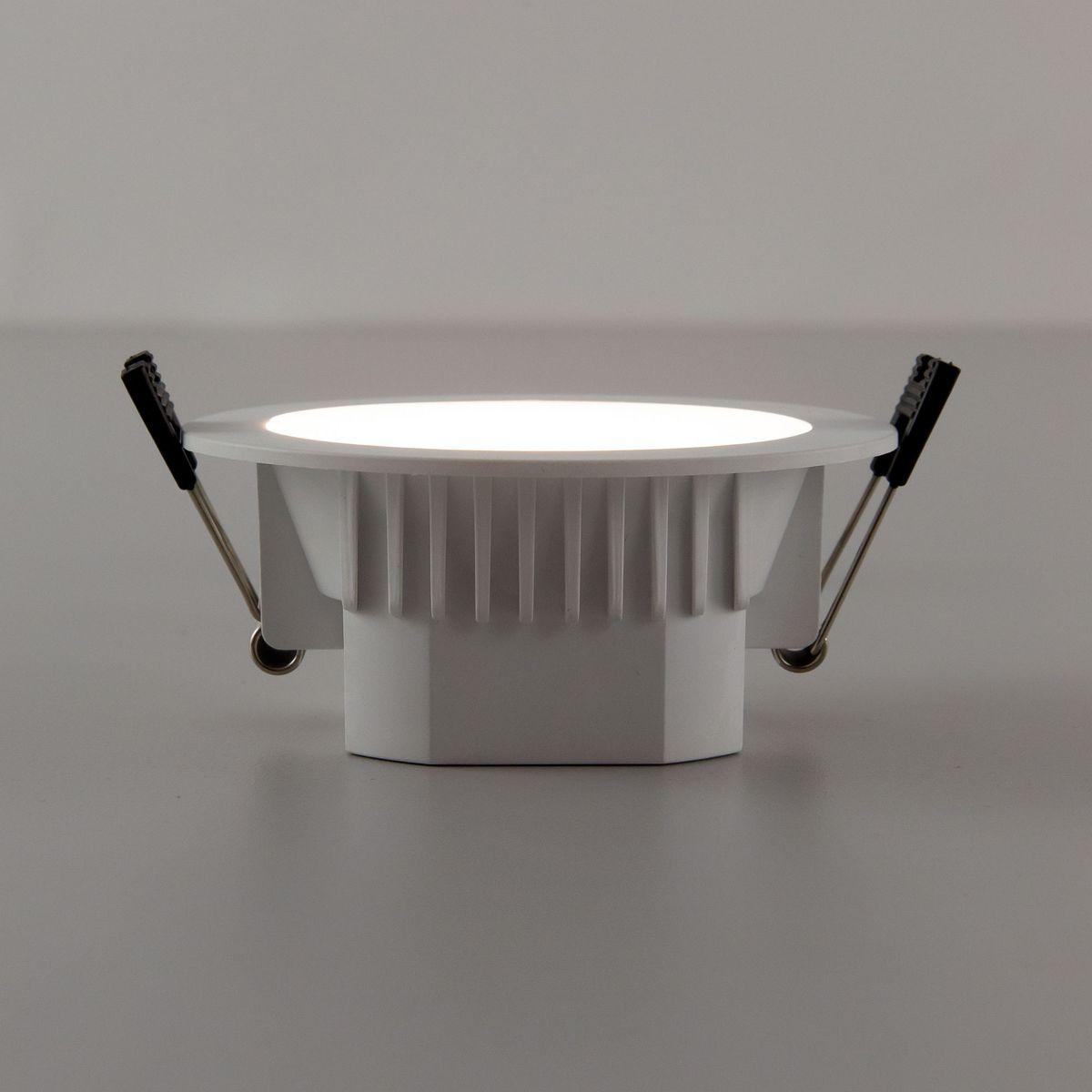 Встраиваемый светодиодный светильник Citilux Акви CLD008110V от Китайского бренда Citilux из коллекции Акви предназначен для установки в ванной в современном стиле. Cветильник в форме круга с полимерной арматурой белого цвета и белого цвета плафонами из полимера предназначен для освещения 2 м2.