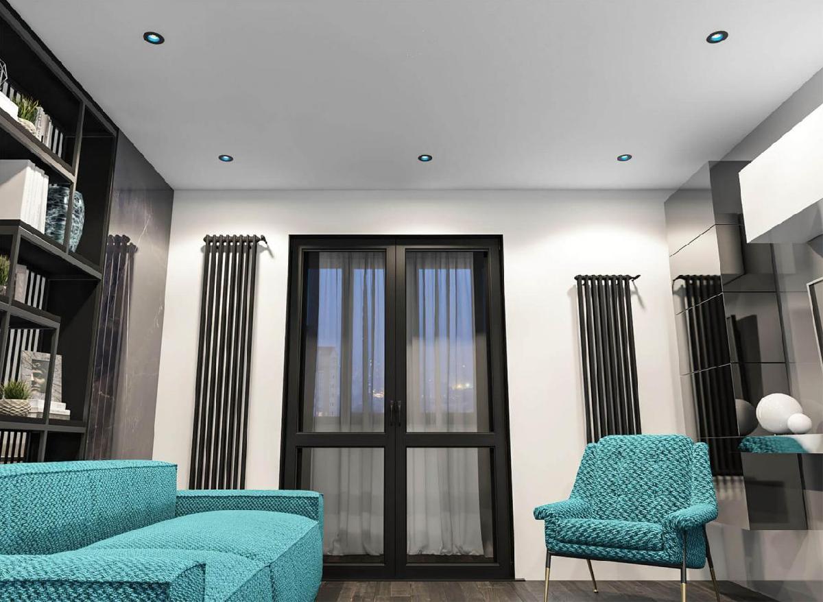 Встраиваемый светильник Denkirs DK3020BСY DK3061-BK+СY от Китайского бренда из коллекции DK3020BСY предназначен для установки в кафе и ресторанах в современном стиле. Cветильник в форме с арматурой черного цвета и голобого цвета плафонами из предназначен для освещения 3,5 м2.