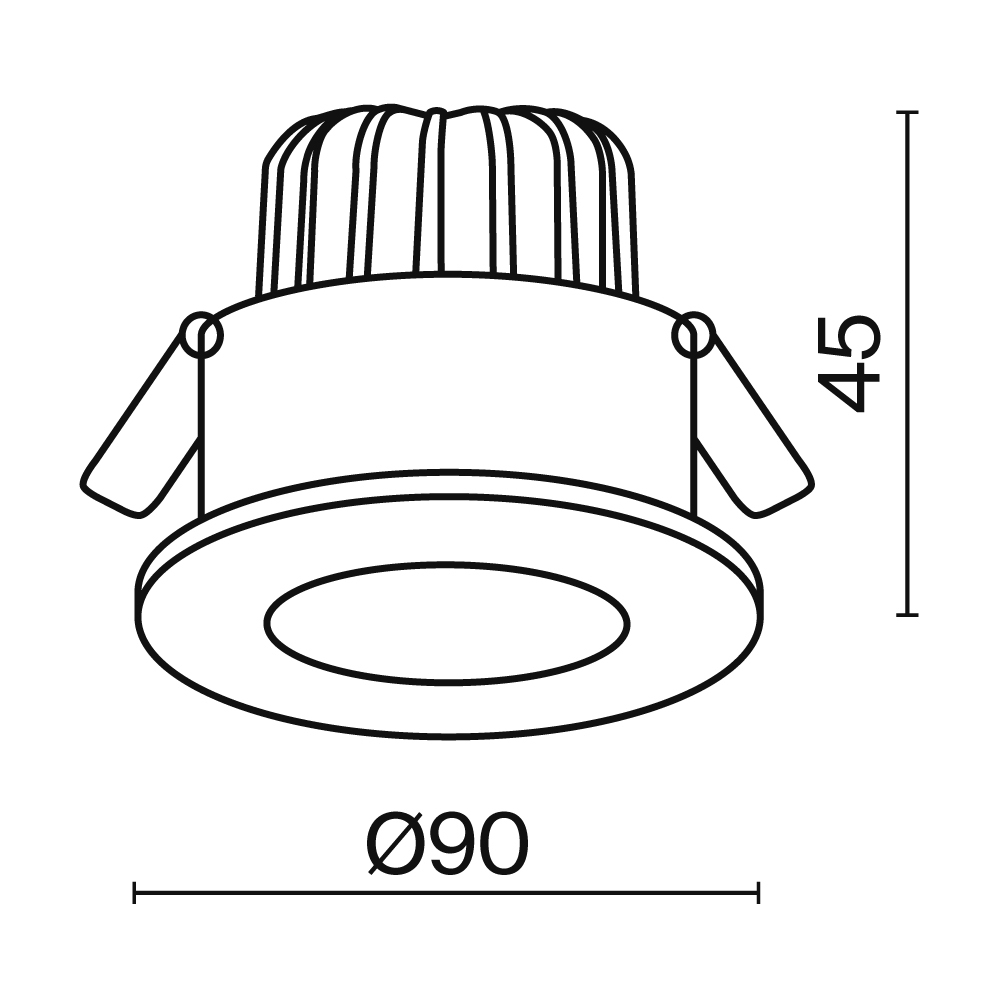 Для светильника необходима W. Габариты изделия: высота – 45 мм, диаметр – 90 мм.