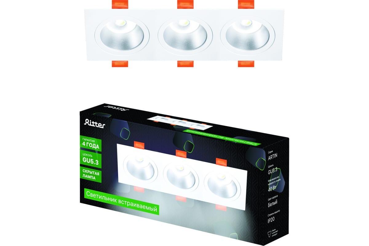 Встраиваемый светильник Ritter Artin 51421 3 от Китайского бренда из коллекции Artin предназначен для установки врезания в прихожей в стиле модерн. Cветильник в форме с алюмииневой арматурой белого цвета и белого цвета плафонами из алюминия предназначен для освещения 7 м2.