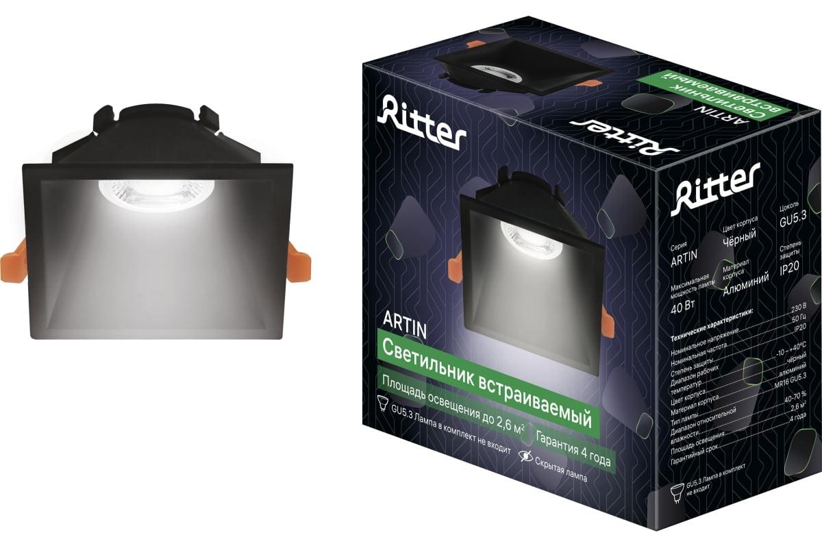 Встраиваемый светильник Ritter Artin 51438 1 от Китайского бренда из коллекции Artin предназначен для установки врезания в прихожей в стиле модерн. Cветильник в форме с пластиковой арматурой черного цвета и черного цвета плафонами из пластика предназначен для освещения м2.