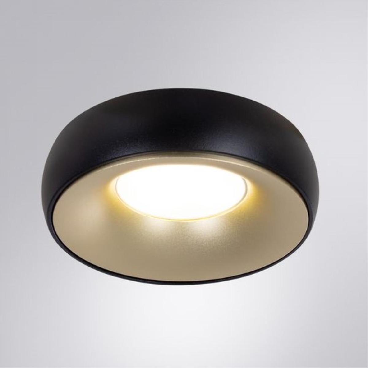 Встраиваемый светильник Arte Lamp Heze A6666PL-1BK от Китайского бренда из коллекции Heze предназначен для установки врезания в прихожей в современном стиле. Cветильник в форме с алюмииневой арматурой черного цвета и залотого цвета плафонами из алюминия предназначен для освещения 1 м2.