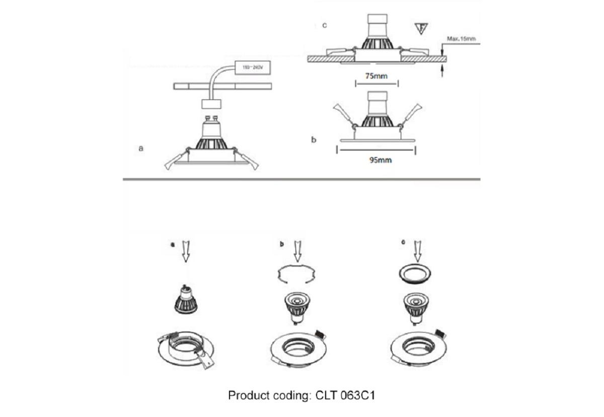 Для светильника необходима 1 галогеновая лампа 50 W. Габариты изделия: высота – 35 мм, диаметр – 95 мм.