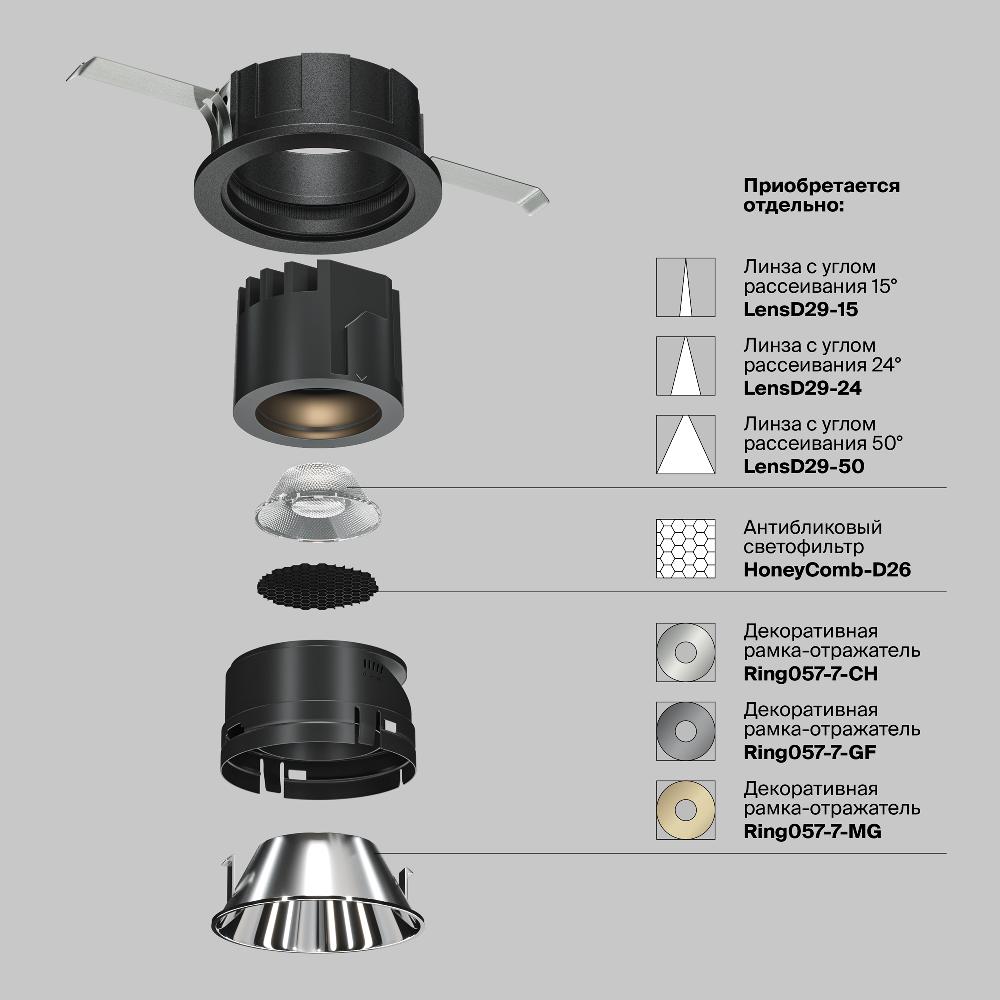 Встраиваемый светильник Technical DL057-7W4K-B от бренда из коллекции Downlight предназначен для установки в . Cветильник в форме с арматурой и плафонами из предназначен для освещения м2.