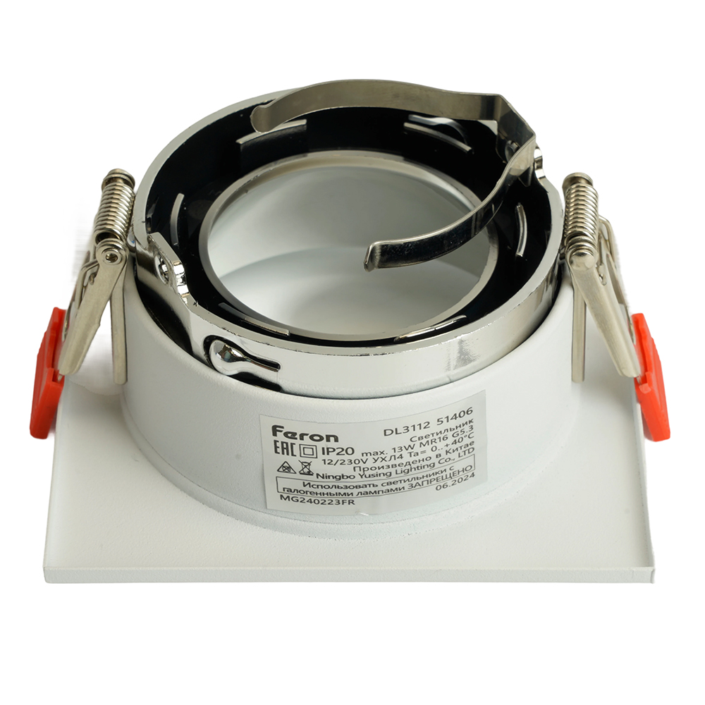 Светильник встраиваемый Feron DL3112 потолочный MR16 G5.3 белый + хром 51406 от бренда из коллекции предназначен для установки в . Cветильник в форме с арматурой и плафонами из предназначен для освещения м2.