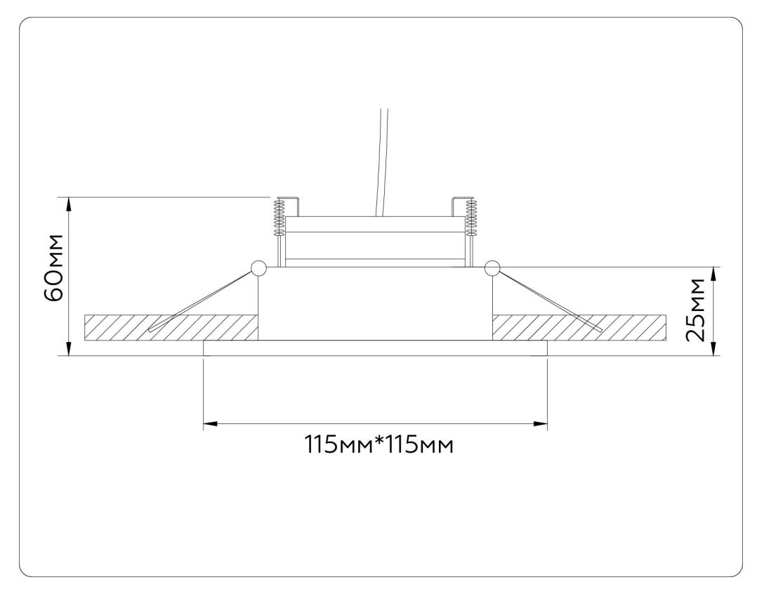 Для светильника необходима W. Габариты изделия: высота – 25 мм, диаметр – мм.