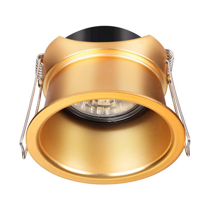 Встраиваемый светильник Novotech Butt 370447 от Венгерского бренда Novotech из коллекции Butt предназначен для установки врезания в кухне в современном стиле. Cветильник в форме круга с алюмииневой арматурой залотого цвета и залотого цвета плафонами из металла предназначен для освещения 2 м2.