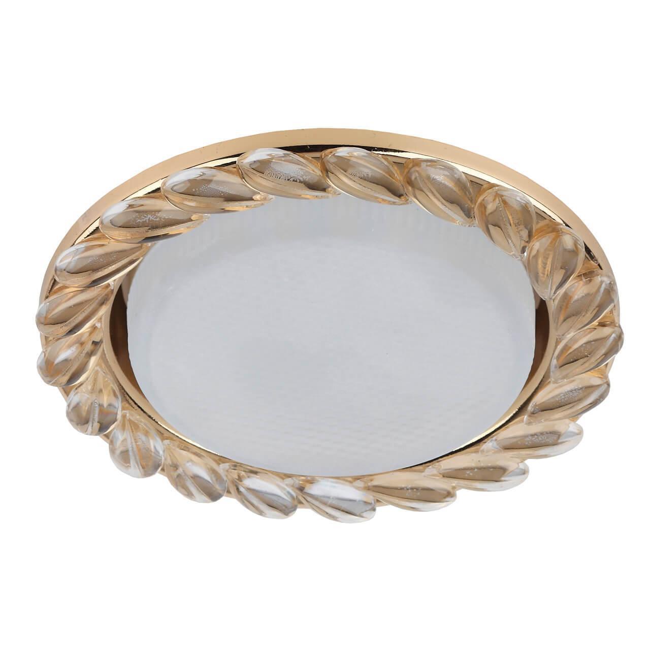 Встраиваемый светильник ЭРА GX53 DK83 GD/WH Б0020571 от Российского бренда ЭРА из коллекции GX53 предназначен для установки в гостиной в стиле модерн. Cветильник в форме круга с металлической арматурой и плафонами из хрусталя предназначен для освещения м2.