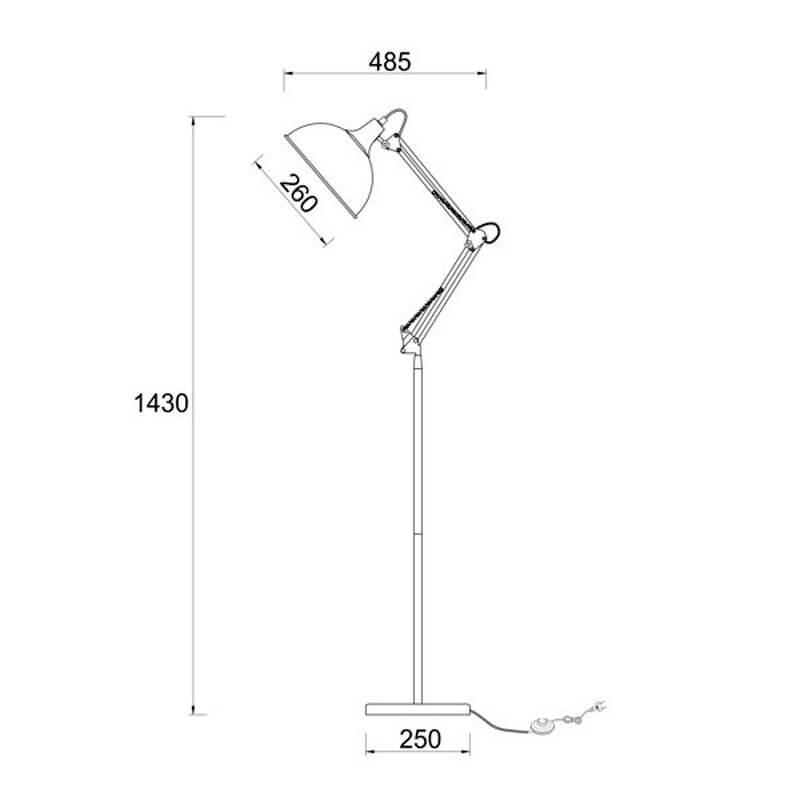 Для торшера необходима 1 лампа накаливания 40 W и цоколем E27. Лампы приобретаются отдельно. Габариты изделия: высота – 1660 мм, диаметр – 210 мм.