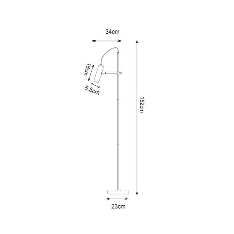 Для торшера необходима 1 галогеновая лампа 50 W и цоколем GU10. Лампы приобретаются отдельно. Габариты изделия: высота – 1520 мм, диаметр – 340 мм.