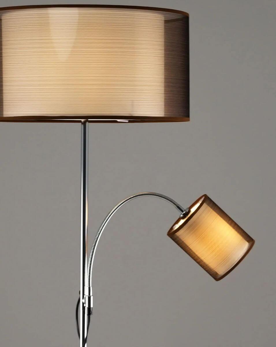 Для торшера необходима 2 лампы накаливания 50 W и цоколем E27. Лампы приобретаются отдельно. Габариты изделия: высота – 1720 мм, диаметр – 450 мм.