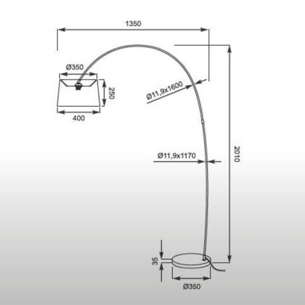 Для торшера необходима 1 лампа накаливания 60 W и цоколем E27. Лампы приобретаются отдельно. Габариты изделия: высота – 2010 мм, диаметр – 400 мм.