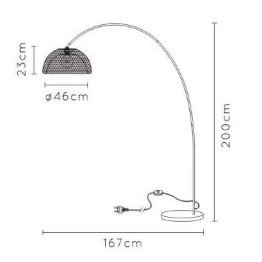 Для торшера необходима 1 лампа накаливания 60 W и цоколем E27. Лампы приобретаются отдельно. Габариты изделия: высота – 2000 мм