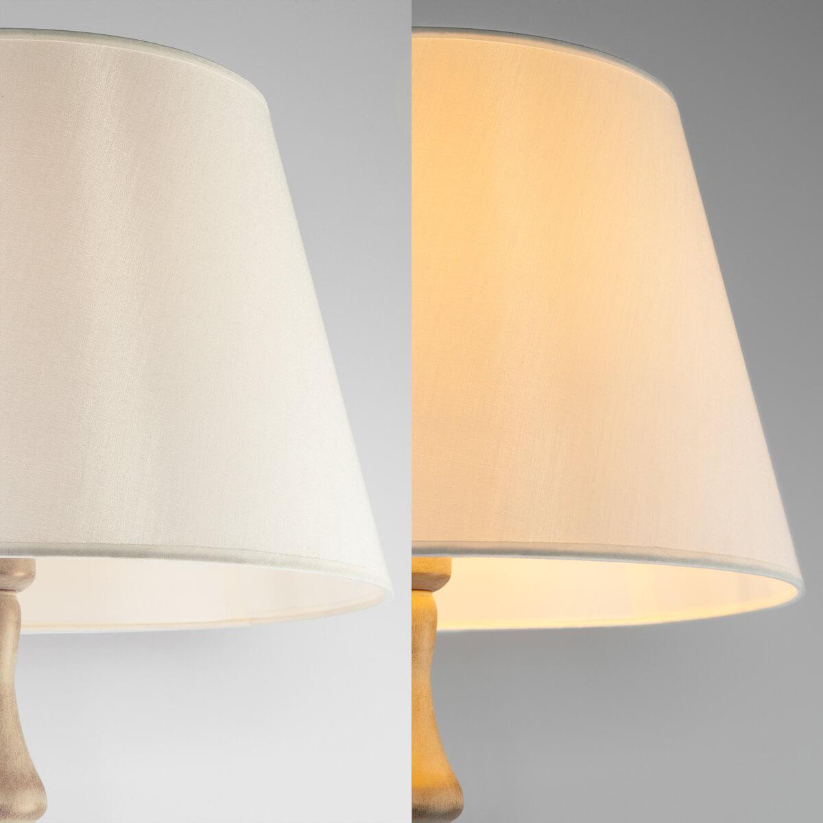 Для торшера необходима 1 лампа накаливания 40 W и цоколем E27. Лампы приобретаются отдельно. Габариты изделия: высота – 1670 мм, диаметр – 400 мм.