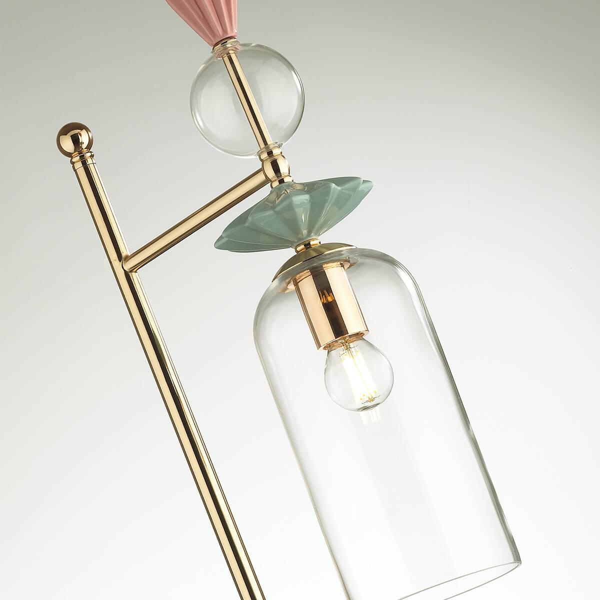 Для торшера необходима 1 лампа накаливания 40 W и цоколем E14. Лампы приобретаются отдельно. Габариты изделия: высота – 1660 мм