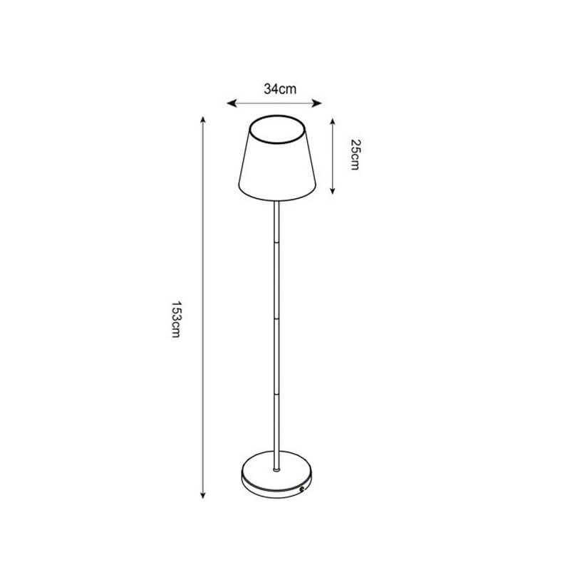 Для торшера необходима 1 лампа накаливания 60 W и цоколем E27. Лампы приобретаются отдельно. Габариты изделия: высота – 1530 мм, диаметр – 340 мм.