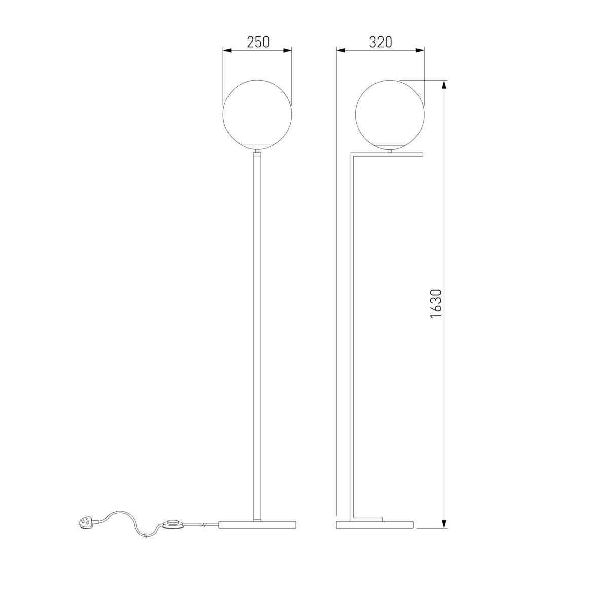 Для торшера необходима 1 лампа накаливания 60 W и цоколем E14. Лампы приобретаются отдельно. Габариты изделия: высота – 1630 мм