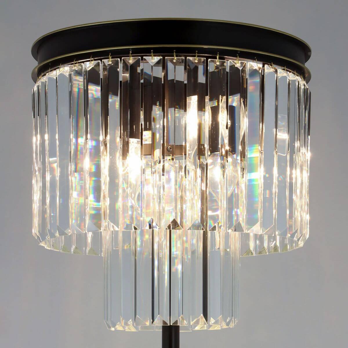 Для торшера необходима 6 ламп накаливания 60 W и цоколем E14. Лампы приобретаются отдельно. Габариты изделия: высота – 1650 мм, диаметр – 350 мм.